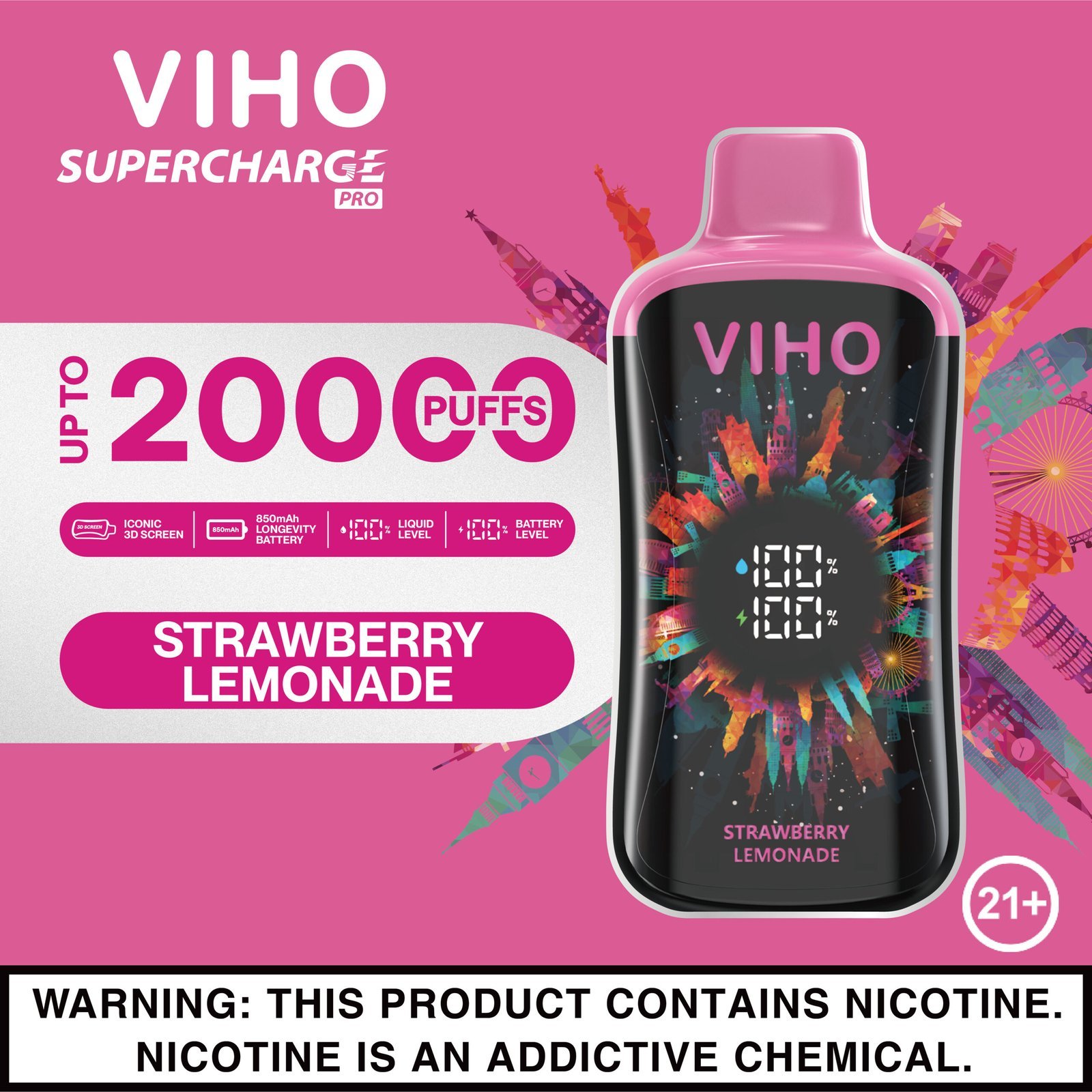 • Includes: 1 Strawberry Lemonade Viho Supercharge Pro Vape