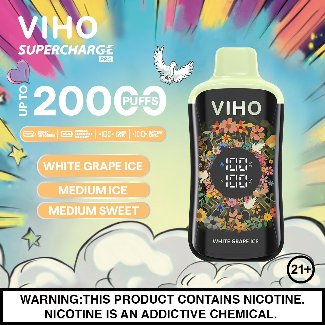 White Grape Ice Viho Supercharge Pro Vape | 20,000+ Puff Disposable Vape Experience